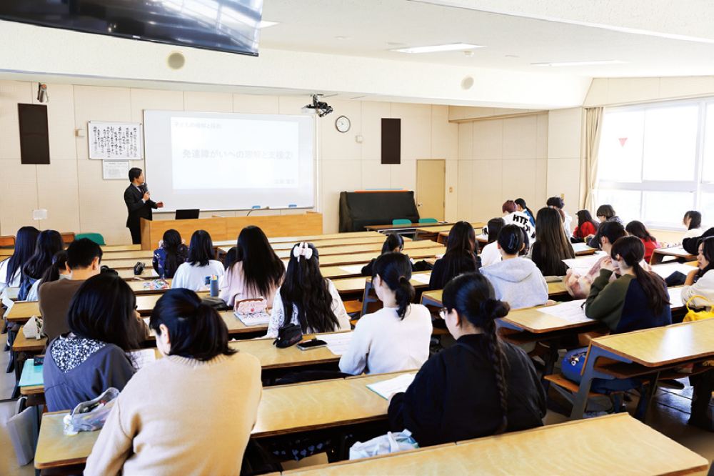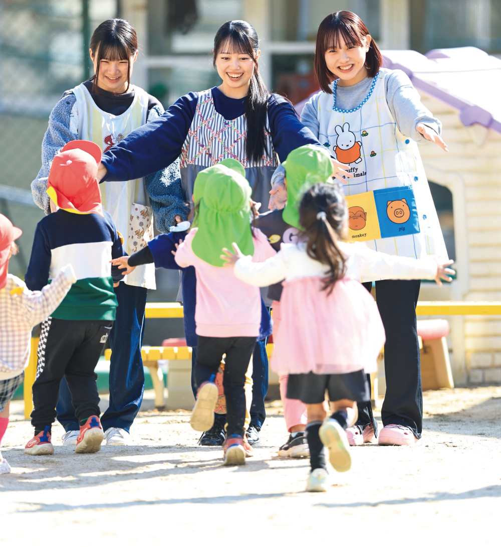 保育者は、子どもたちにとって最初の『先生』です。その言葉や振る舞いで積極的な気持ちが芽生えたり、毎日が楽しくなったり、逆に引っ込み思案になったりします。その後の人生にも影響を与える存在と言えるでしょう。保育科の学生たちに志望理由を聞くと、多くが小さいときに出会った『先生』が好きで「ああいう先生になりたいから」と答えることからも、いかに大切な仕事かがわかります。本学が人の心を理解する力や保育者自身の心の健全さを重視しているのは、保育の重要性を知るからです。