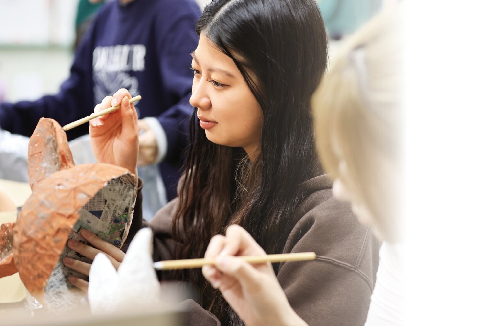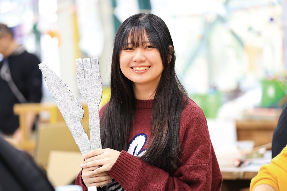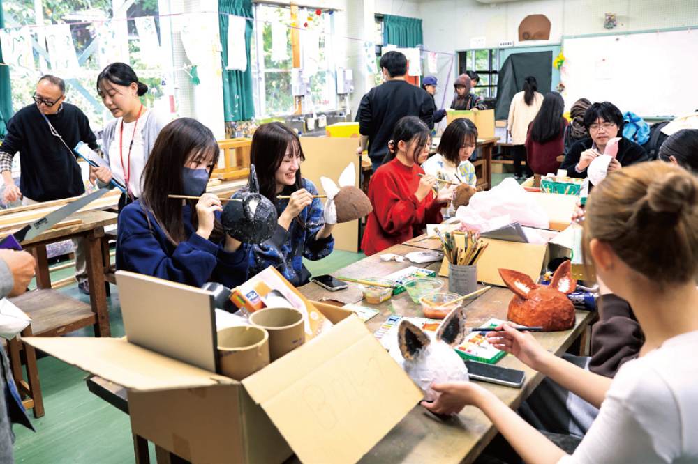 - 造形の講義では、さまざまな素材や教材等を用いて、学生自身が楽しみながら、体験的に学びます。子どもの柔軟な発想を育むため、知識と技術を身につけます。
