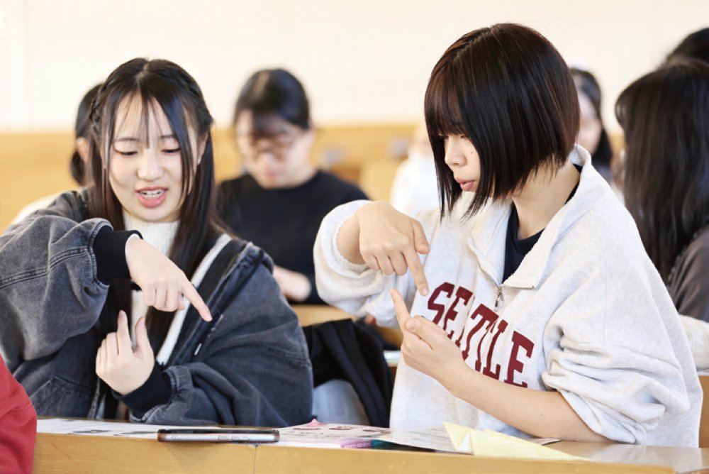 言葉だけでなく、表情やしぐさなどで「心を伝えるコミュニケーション」を学ぶのが手話です。手話を通して、子どもの気持ちを感じ取る豊かな感受性と表現力を育てます。声だけに頼らないコミュニケーションを体験し、多様な子どもへの理解を深めることで、誰もが安心できる保育を目指す第一歩になります。“ことばの壁をこえたやさしさ”を育む講義です。