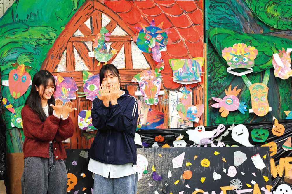 - 保育発表会では、2年間学んだ保育の技術や知識を、ミュージカル・楽器演奏などのパフォーマンスや研究発表展示を行います。学生の個性やアイディアが光る!