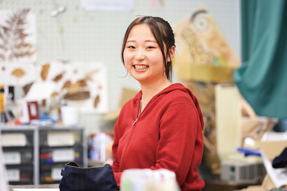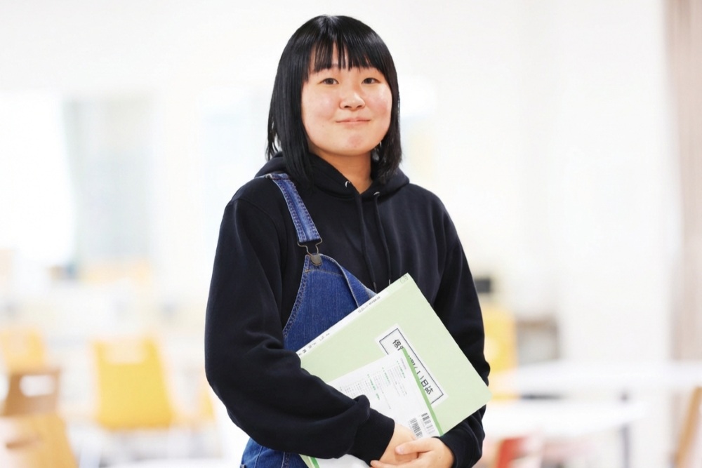 この大学を選んだのは、本来2年間で学ぶカリキュラムを3年かけて学ぶ長期履修制度があったから。時間割にゆとりができる分、例えば講義で作るエプロンシアターの内容をじっくり考えることができたり、指導案も現場を細部まで想像して、もう一歩踏み込んで詳しく書くことができます。高校は商業科だったこともあり、保育に関する知識が全くない状態で入学した私にとって、日々の講義で得た知識を、時間をかけて自分なりに深堀りできるこのスタイルが合っていると感じています。また、アルバイトに時間を使えることも良い面のひとつ。働くことの責任感やさまざまな年代の方たちとの会話を通してコミュニケーション力を育むことで、社会人として必要な力を培えている実感があります。ここで得た経験を糧に、常に笑顔でいる保育者になることが目標です。