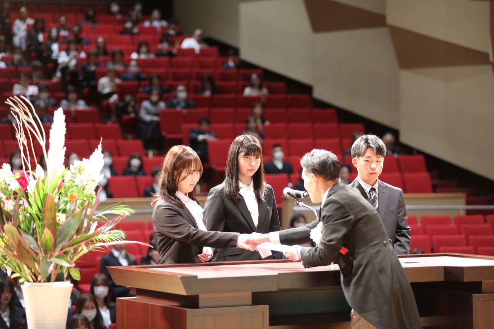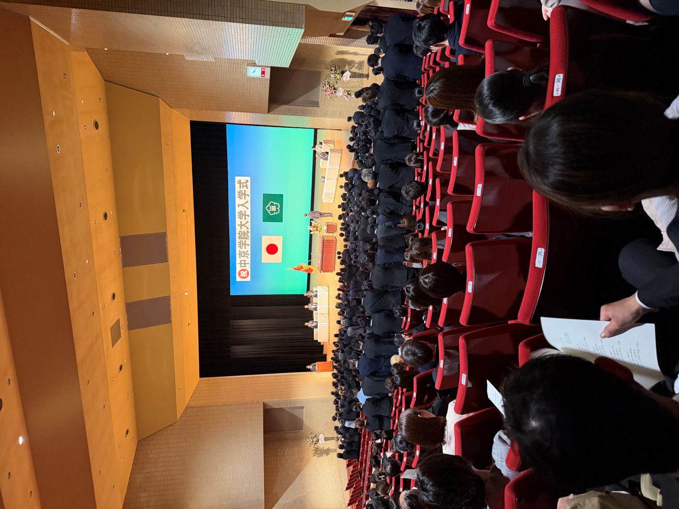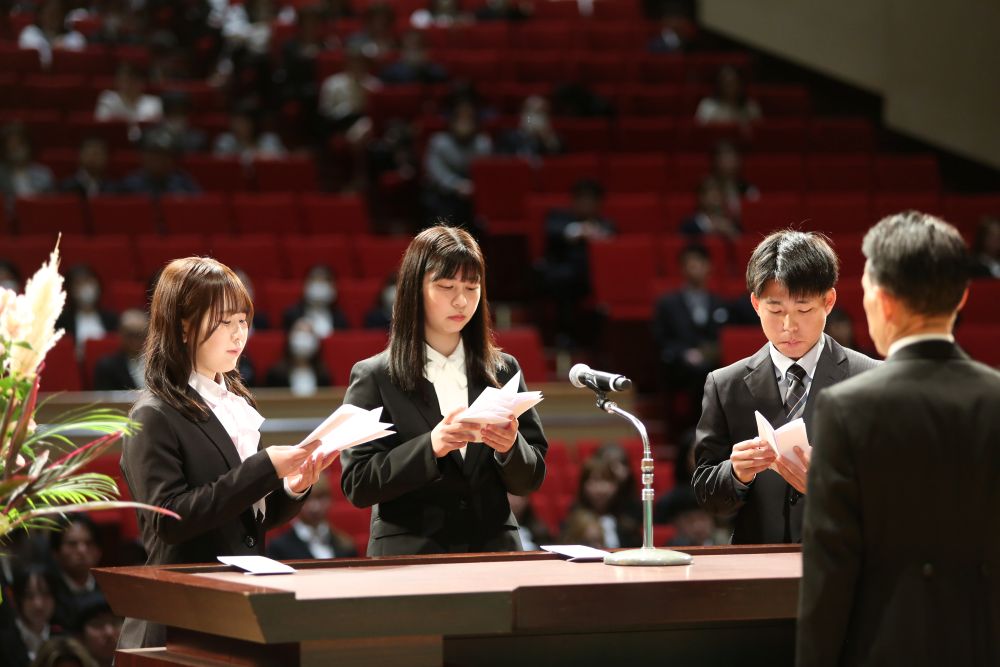 厳粛かつ温かな雰囲気のもと式典が進行され、新入生代表宣誓では、各学部3名の代表が壇上に立ち、期待や目標を語りました。