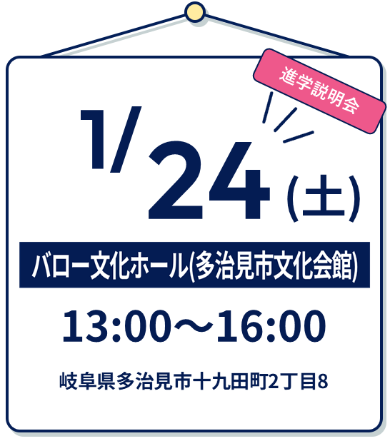| 9月 | 13日(土) 瑞浪キャンパス 20日(土) 中津川キャンパス |