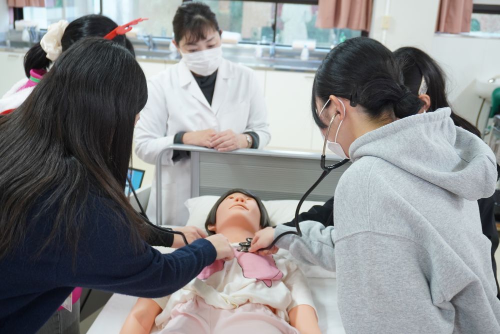 看護学部では、看護師のクリスマスをテーマにゲーム形式で看護師の仕事を体感できます! 正確性とスピードを求められる看護師の仕事をどうやって学ぶのか、特別な設備も見どころのひとつ! 在校生から学校生活や授業の様子を聞けるスイーツタイムもあるよ♪