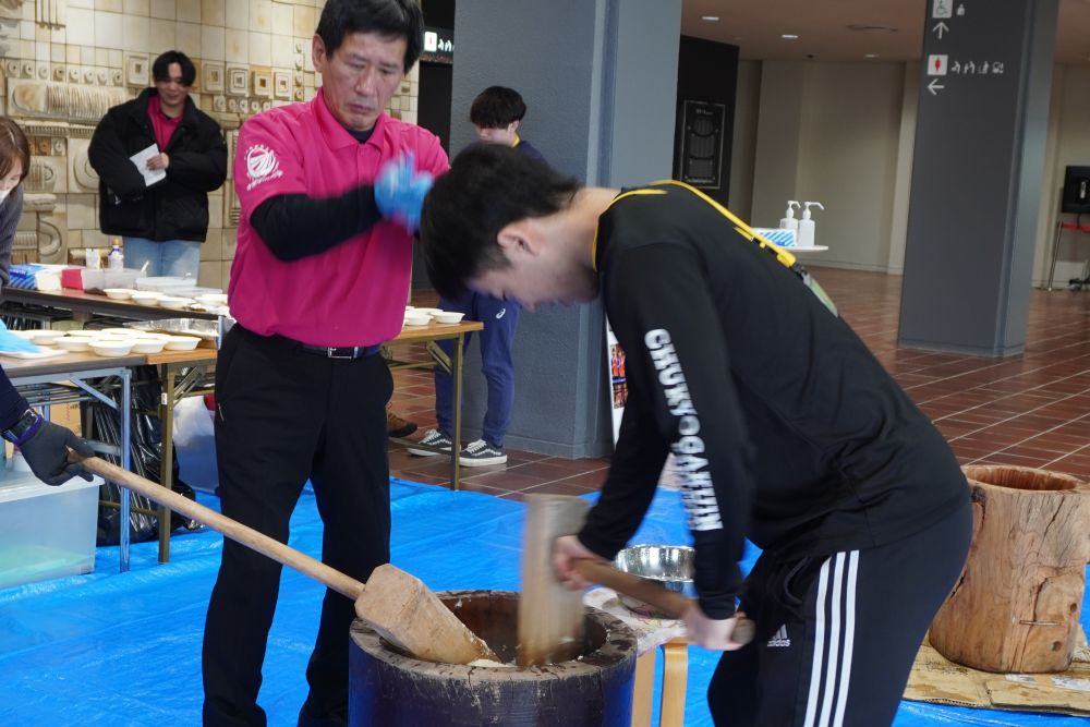 ・男子ソフトボール部が作ったお米ということ、お餅つきを一生懸命する大学ということ、ダブルでビックリだったけど、とても楽しかった