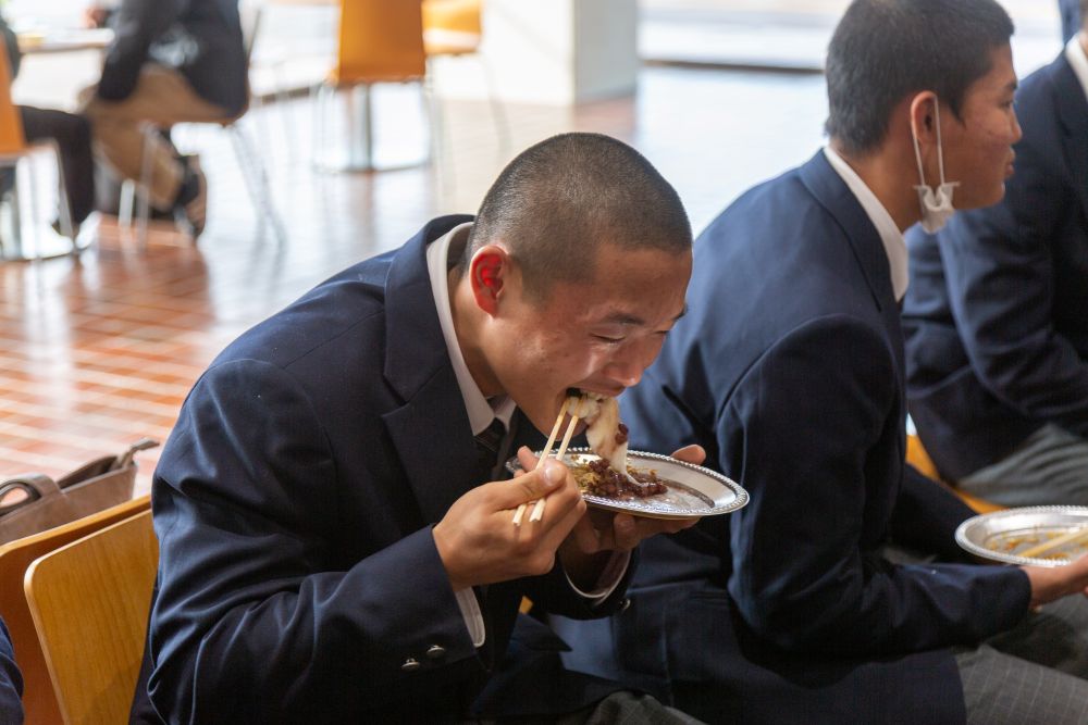 彼ら男子ソフトボール部が育てたもち米でお餅つきを行い、みんなで食べました!