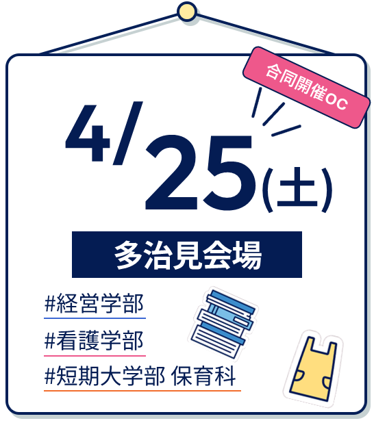 | 4月25日(土) | 3学部同時開催 | 多治見会場(ヤマカまなびパーク) | OPEN CAMPUS |