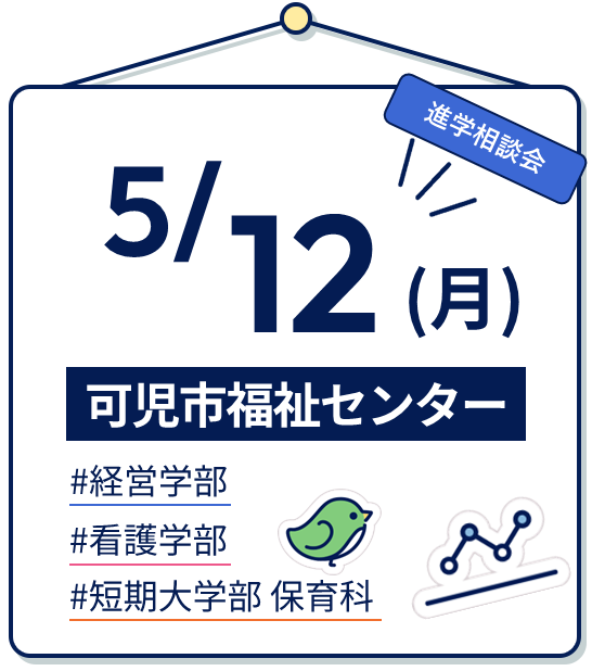 | 5月30日(土) | 3学部同時開催 | 多治見会場(多治見市役所 駅北庁舎) | OPEN CAMPUS |