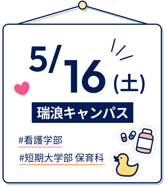 | 5月16日(土) | 看護・保育 | 瑞浪キャンパス | OPEN CAMPUS |